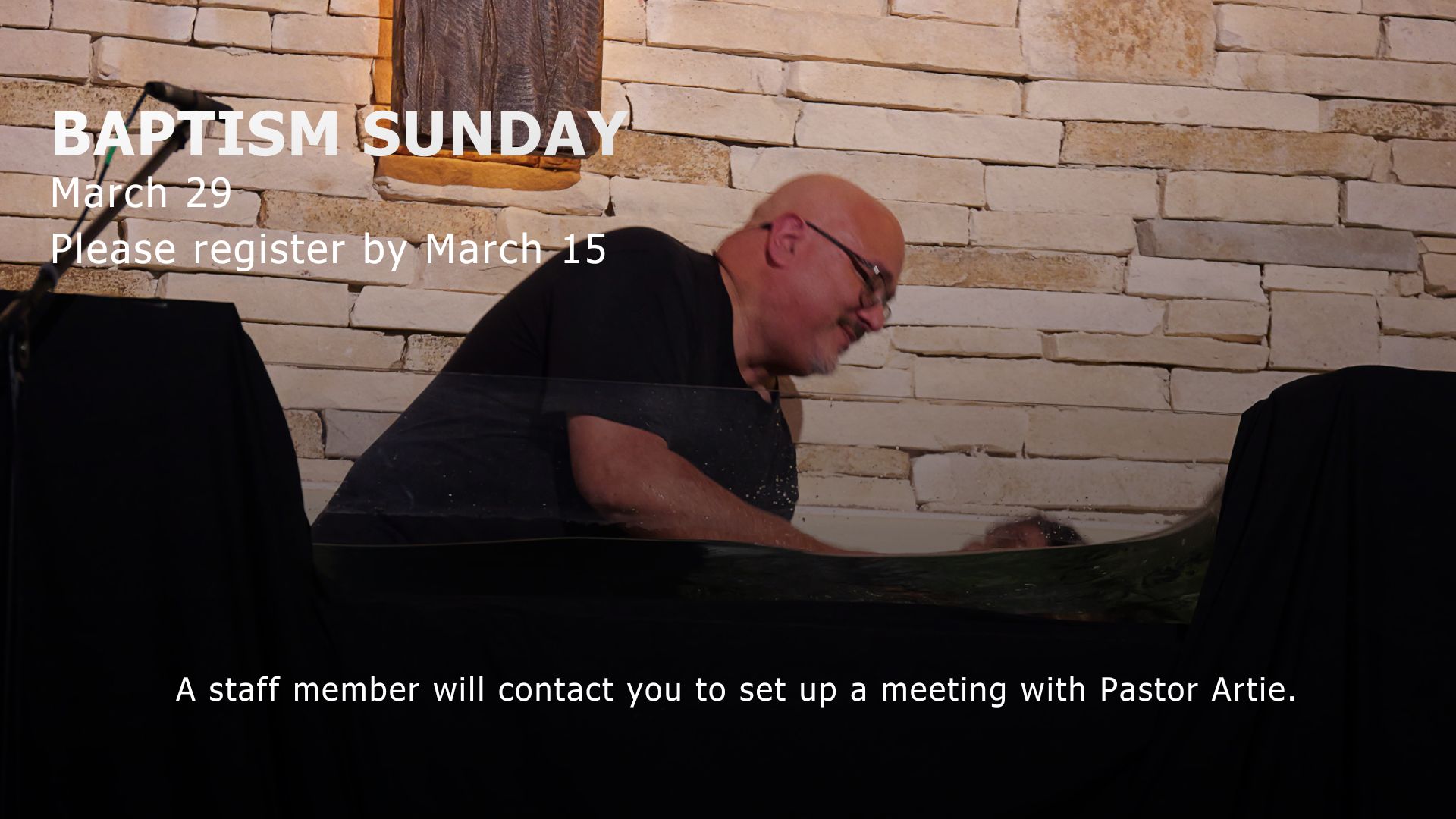Register to be baptised during the service on March 29.